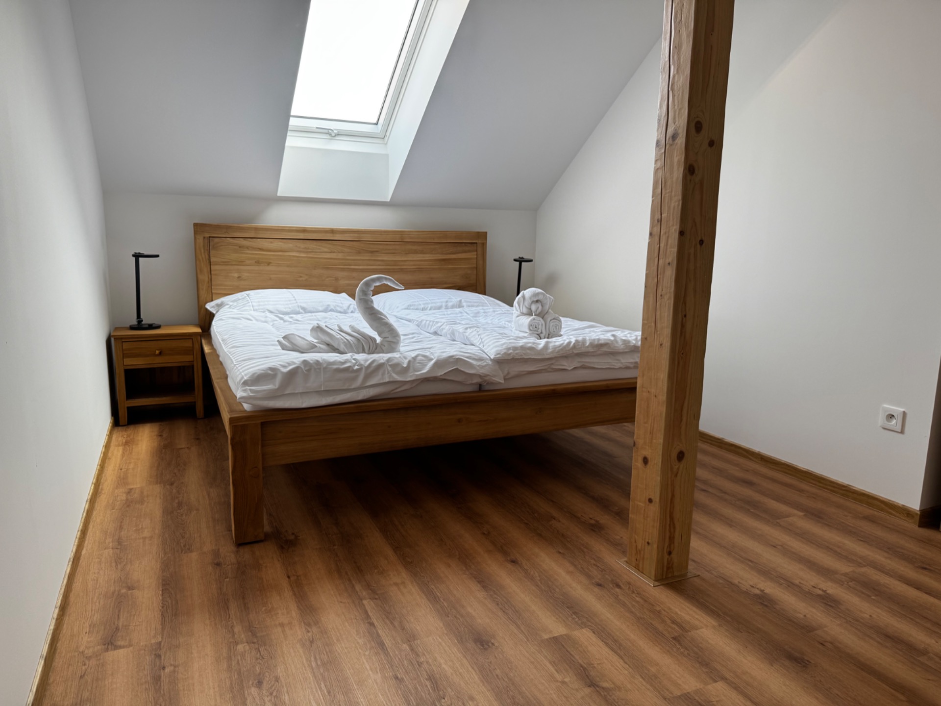 Nabízí komfortní ubytování v podkroví. Moderní interiér v kombinaci s útulnou atmosférou vytváří ideální místo pro romantický pobyt, víkendový relax i delší dovolenou na jižní Moravě.